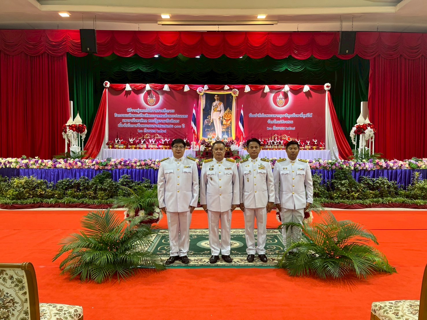 วันที่ 20 กันยายน 2568 เวลา 10.00 น. นายศุภวิชญ์ ดิษเจริญ ผู้อำนวยการสำนักงานเขตพื้นที่การศึกษามัธยมศึกษาแม่ฮ่องสอน พร้อมด้วยเจ้าหน้าที่กลุ่มส่งเสริมการจัดการศึกษา ได้เข้าร่วมพิธีวางพานพุ่มดอกไม้ถวายราชสักการะเฉลิมพระเกียรติพระบาทสมเด็จพระปรเมนทรมหาอานันทมหิดล พระอัฐมรามาธิบดินทร เนื่องในโอกาสวันพระราชสมภพครบ 100 ปี ณ อาคารอเนกประสงค์บุญชูตรีทอง โรงเรียนห้องสอนศึกษาในพระอุปถัมภ์ฯ อำเภอเมืองแม่ฮ่องสอน จังหวัดแม่ฮ่องสอน