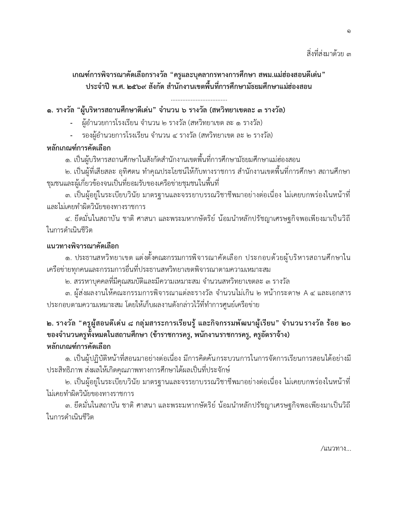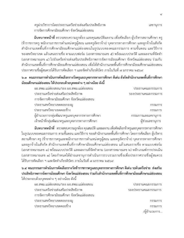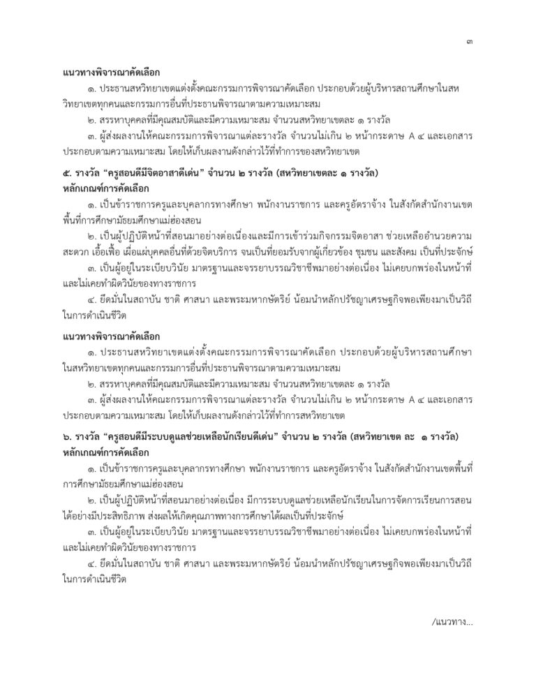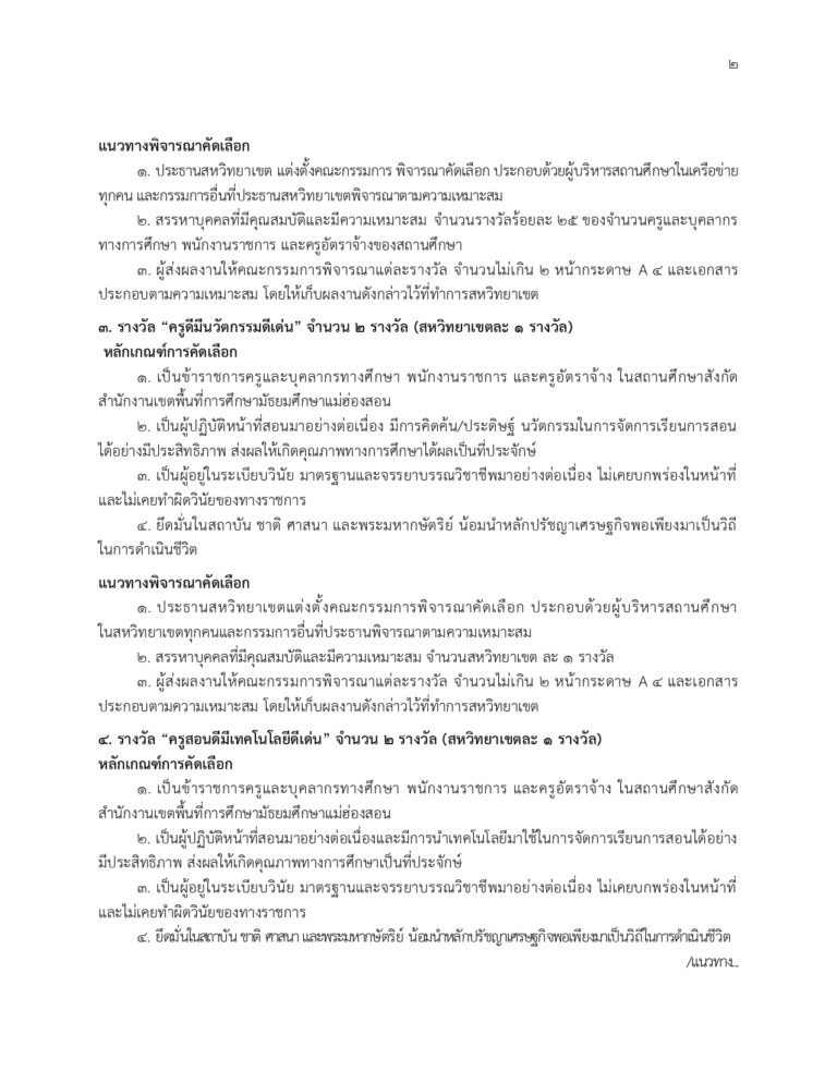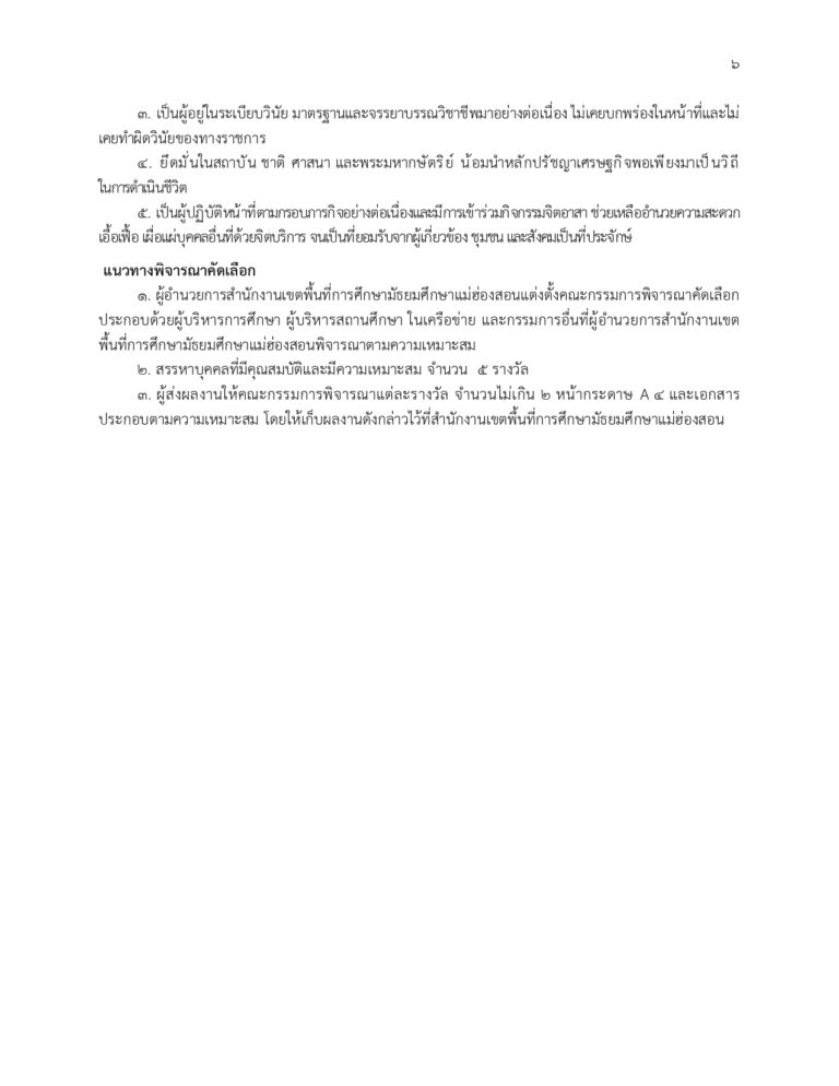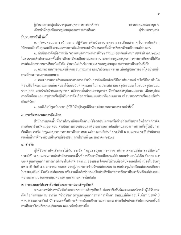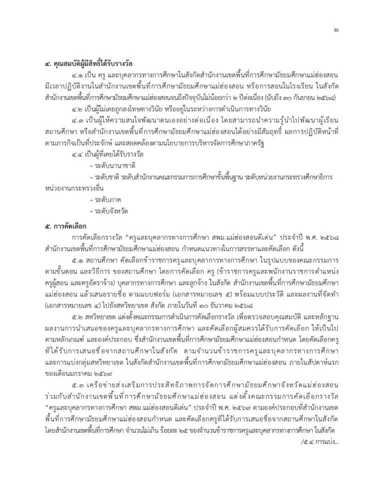 เกณฑ์การพิจารณาคัดเลือกรางวัล “ครูและบุคลากรทางการศึกษา สพม.แม่ฮ่องสอนดีเด่น”