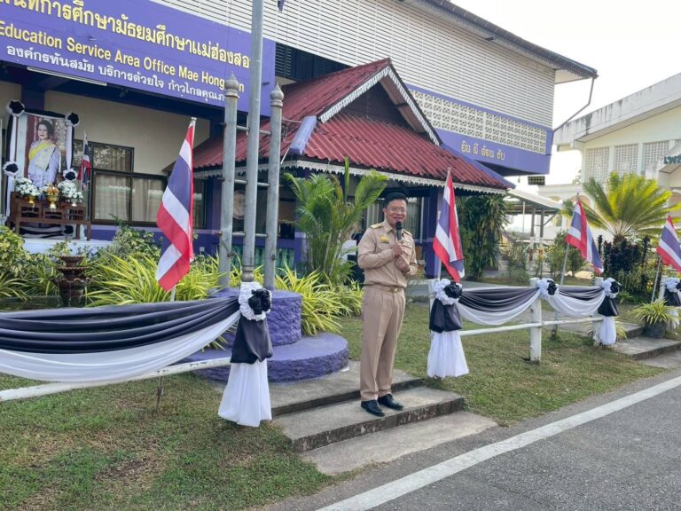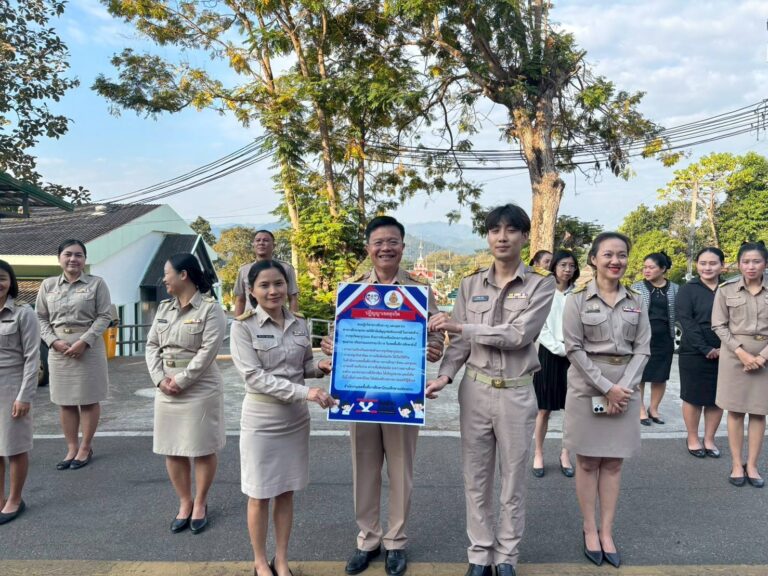 วันจันทร์ที่ 12 มกราคม 2569 เวลา 08.30 น. นายธีรภัทร วงษ์สว่าง ผู้อำนวยการสำนักงานเขตพื้นที่การศึกษามัธยมศึกษาแม่ฮ่องสอน นำผู้อำนวยการกลุ่มภารกิจ ข้าราชการ และเจ้าหน้าที่ในสังกัด ร่วมกิจกรรมเข้าแถวเคารพธงชาติ สวดมนต์ และกล่าวคำปฏิญญาเขตสุจริต ณ บริเวณหน้าสำนักงานเขตพื้นที่การศึกษามัธยมศึกษาแม่ฮ่องสอน ตำบลจองคำ อำเภอเมืองแม่ฮ่องสอน จังหวัดแม่ฮ่องสอน