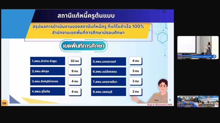 วันจันทร์ที่ 19 พฤษภาคม 2568 เวลา 09.00 น. นายศุภวิชญ์ ดิษเจริญ ผู้อำนวยการสำนักงานเขตพื้นที่การศึกษามัธยมศึกษาแม่ฮ่องสอน พร้อมด้วยนายสุรพล จริยา รองผู้อำนวยการสำนักงานเขตพื้นที่การศึกษามัธยมศึกษาแม่ฮ่องสอน และคณะกรรมการแก้ไขปัญหาหนี้สินข้าราชการครูและบุคลากรทางการศึกษา ระดับสำนักงานเขตพื้นที่การศึกษา (สถานีแก้หนี้ครู) เข้าร่วมประชุมระดมความคิดเห็น “ปัญหาหนี้สินของข้าราชการ (ครู) ที่รัฐบาลอยากแก้ไข : จะสำเร็จได้ด้วยระบบสหกรณ์” ผ่านช่องทางออนไลน์ ระบบ Zoom Meeting ณ ห้องประชุม ชั้น 2 สำนักงานเขตพื้นที่การศึกษามัธยมศึกษาแม่ฮ่องสอน ตำบลจองคำ อำเภอเมืองแม่ฮ่องสอน จังหวัดแม่ฮ่องสอน