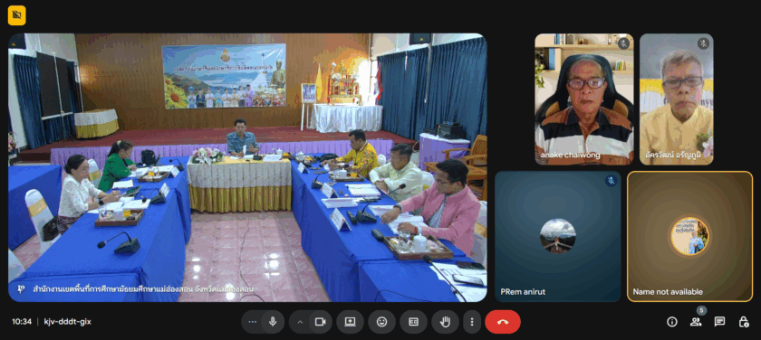 วันพฤหัสบดีที่ 18 กันยายน 2568 เวลา 09.30 น. นายศุภวิชญ์ ดิษเจริญ ผู้อำนวยการสำนักงานเขตพื้นที่การศึกษามัธยมศึกษาแม่ฮ่องสอน พร้อมคณะกรรมการ อ.ก.ค.ศ. เขตพื้นที่การศึกษาฯ ผู้ทรงคุณวุฒิ และกลุ่มบริหารงานบุคคล เข้าร่วมการประชุม อ.ก.ค.ศ. เขตพื้นที่การศึกษามัธยมศึกษาแม่ฮ่องสอน ครั้งที่ 9/2568 เพื่อหารือ และชี้แจงข้อราชการต่างๆ โดยมีนายประจักษ์ สีหราช ประธาน อ.ก.ค.ศ. เขตพื้นที่การศึกษามัธยมศึกษาแม่ฮ่องสอน เป็นประธานในการประชุม ผ่านระบบออนไลน์ Google Meet ณ ห้องประชุมสำนักงานเขตพื้นที่การศึกษามัธยมศึกษาแม่ฮ่องสอน ตำบลจองคำ อำเภอเมืองแม่ฮ่องสอน จังหวัดแม่ฮ่องสอน