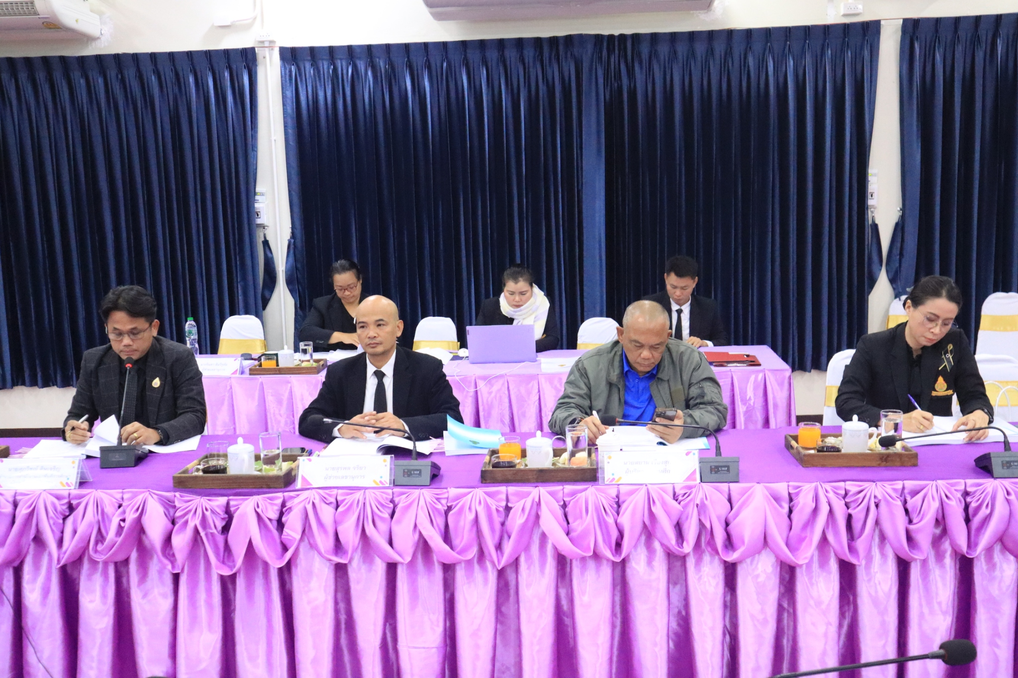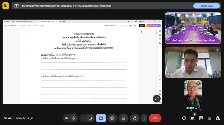 วันที่ 3 ธันวาคม 2568 เวลา 09.30 น. นายศุภวิชญ์ ดิษเจริญ ผู้อำนวยการสำนักงานเขตพื้นที่การศึกษามัธยมศึกษาแม่ฮ่องสอน พร้อมด้วย นายสุรพล จริยา รองผู้อำนวยการสำนักงานเขตพื้นที่การศึกษามัธยมศึกษาแม่ฮ่องสอน คณะกรรมการ อ.ก.ค.ศ. เขตพื้นที่การศึกษาฯ ผู้ทรงคุณวุฒิ และกลุ่มบริหารงานบุคคล เข้าร่วมการประชุม อ.ก.ค.ศ. เขตพื้นที่การศึกษามัธยมศึกษาแม่ฮ่องสอน ครั้งที่ 12/2568 เพื่อหารือ และชี้แจงข้อราชการต่างๆ โดยมีนายประจักษ์ สีหราช ประธาน อ.ก.ค.ศ. เขตพื้นที่การศึกษามัธยมศึกษาแม่ฮ่องสอน เป็นประธานในการประชุม ณ ห้องประชุมสำนักงานเขตพื้นที่การศึกษามัธยมศึกษาแม่ฮ่องสอน ตำบลจองคำ อำเภอเมืองแม่ฮ่องสอน จังหวัดแม่ฮ่องสอน