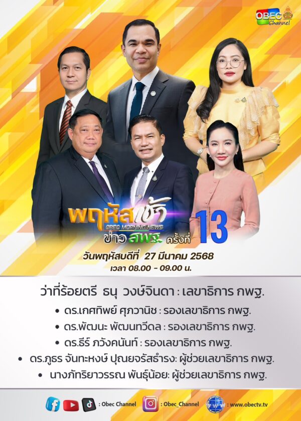 วันพฤหัสบดีที่ 27 มีนาคม 2568 เวลา 08.00 น. นายศุภวิชญ์ ดิษเจริญ ผู้อำนวยการสำนักงานเขตพื้นที่การศึกษามัธยมศึกษาแม่ฮ่องสอน พร้อมด้วยนายสุรพล จริยา รองผู้อำนวยการสำนักงานเขตพื้นที่การศึกษามัธยมศึกษาแม่ฮ่องสอน และผู้อำนวยการกลุ่มภารกิจ เข้าร่วมรับชมรายการพฤหัสเช้าข่าว สพฐ. ครั้งที่ 13/2568 เพื่อรับทราบแนวทางนโยบายการบริหารจัดการศึกษาและนำนโยบายสู่การปฏิบัติ ให้เกิดประสิทธิภาพและบรรลุเป้าหมาย ณ ห้องประชุมสำนักงานเขตพื้นที่การศึกษามัธยมศึกษาแม่ฮ่องสอน ตำบลจองคำ อำเภอเมืองแม่ฮ่องสอน จังหวัดแม่ฮ่องสอน