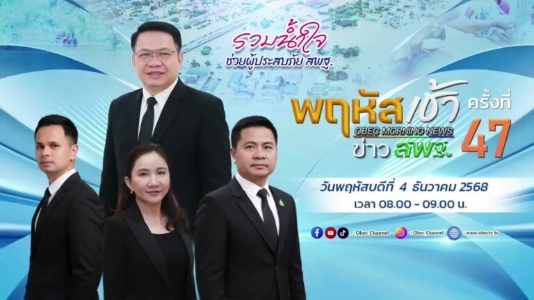 วันพฤหัสบดีที่ 4 ธันวาคม 2568 เวลา 08.00 น. นายศุภวิชญ์ ดิษเจริญ ผู้อำนวยการสำนักงานเขตพื้นที่การศึกษามัธยมศึกษาแม่ฮ่องสอน พร้อมด้วย นายสุรพล จริยา รองผู้อำนวยการสำนักงานเขตพื้นที่การศึกษามัธยมศึกษาแม่ฮ่องสอน และผู้อำนวยการกลุ่มภารกิจ เข้าร่วมรับชมรายการ “พฤหัสเช้าข่าว สพฐ.” ครั้งที่ 47/2568 ณ ห้องประชุม ชั้น 2 สำนักงานเขตพื้นที่การศึกษามัธยมศึกษาแม่ฮ่องสอน ตำบลจองคำ อำเภอเมืองแม่ฮ่องสอน จังหวัดแม่ฮ่องสอน