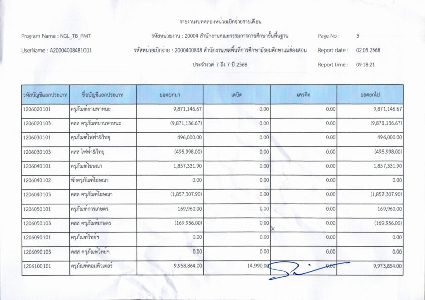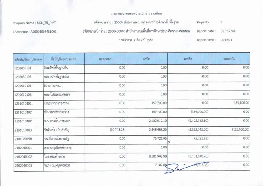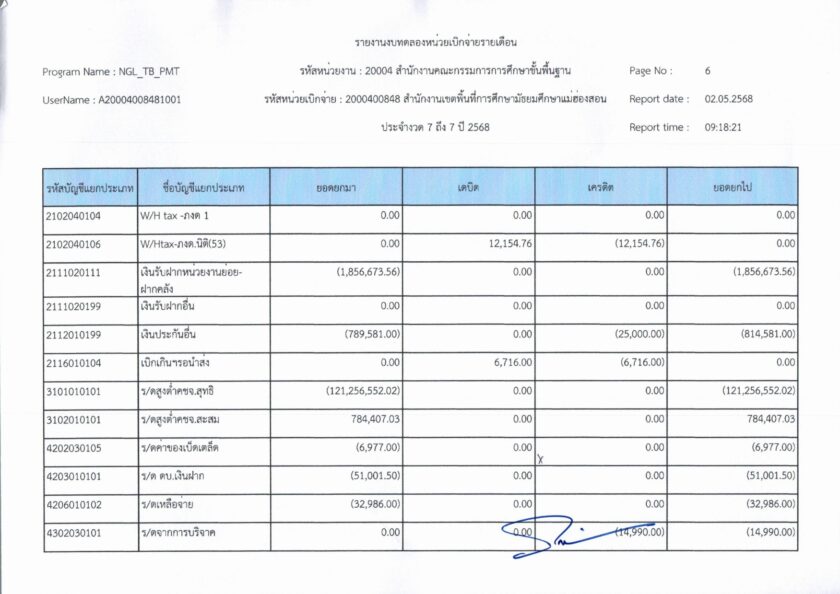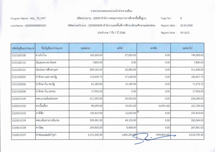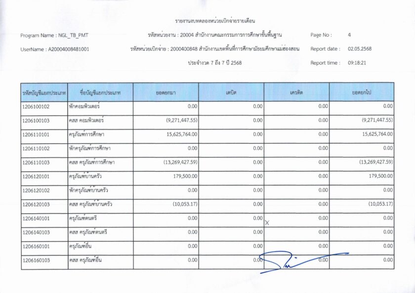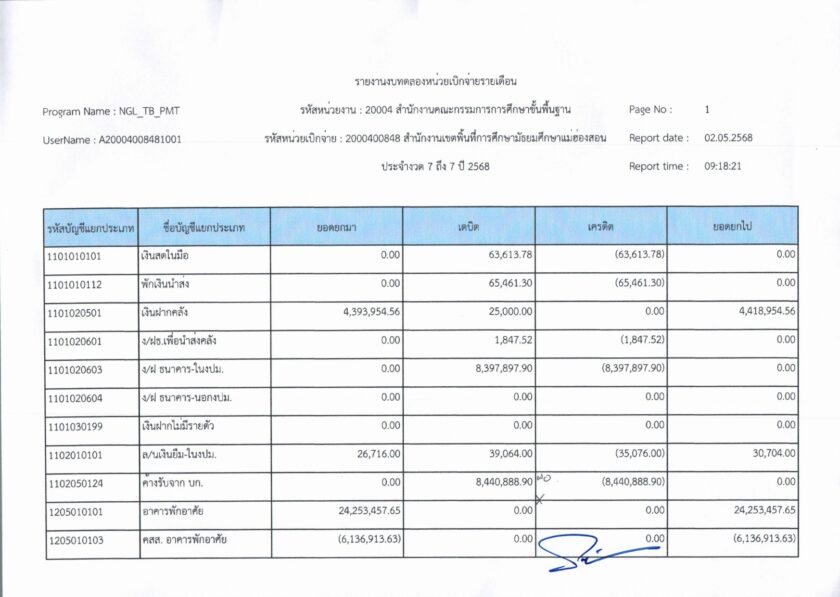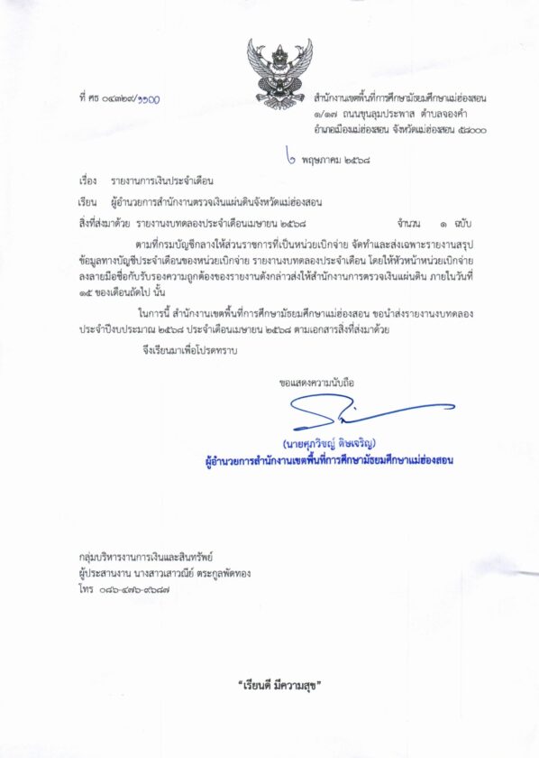 รายงานการเงินประจำเดือนเมษายน พ.ศ. 2568