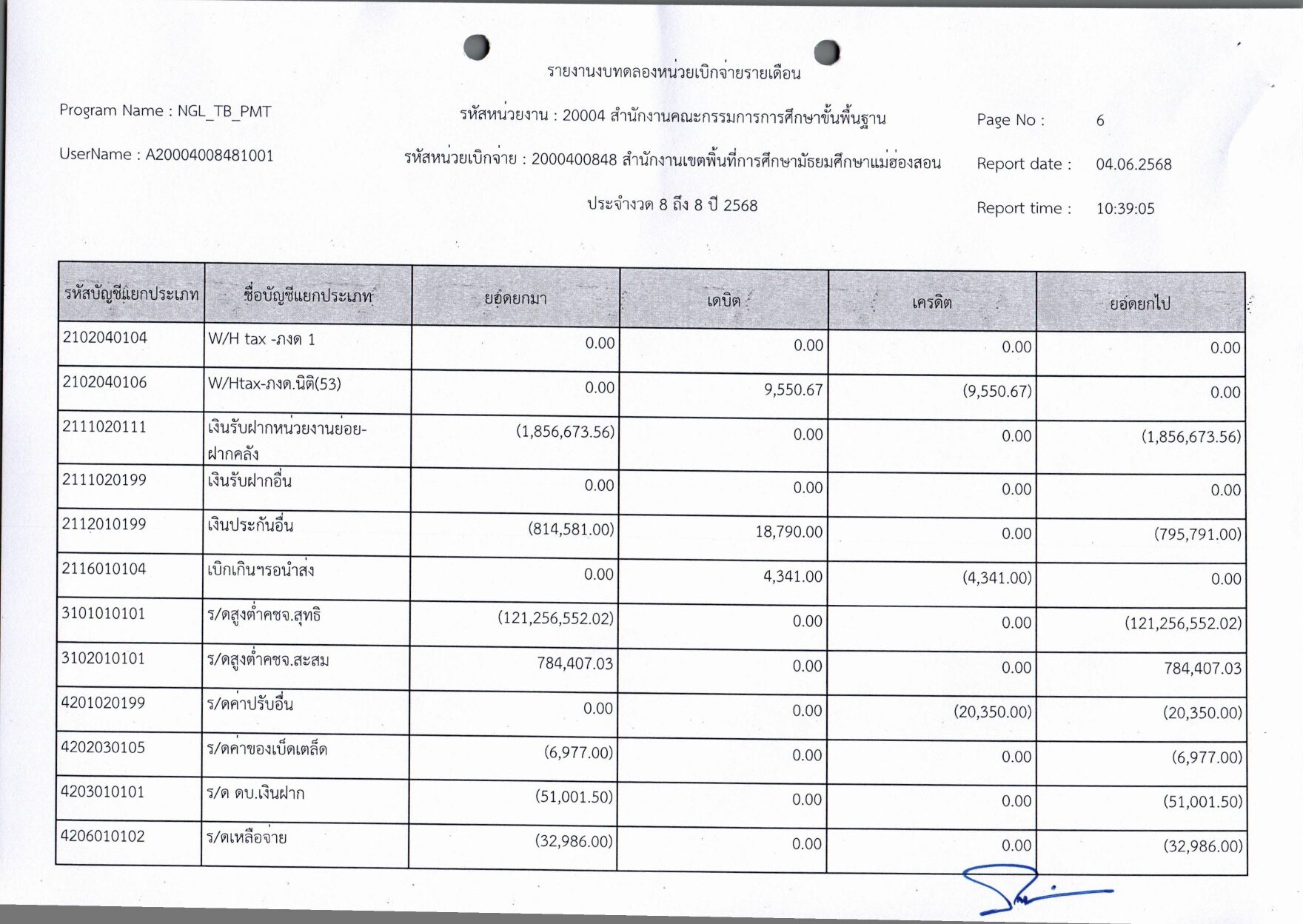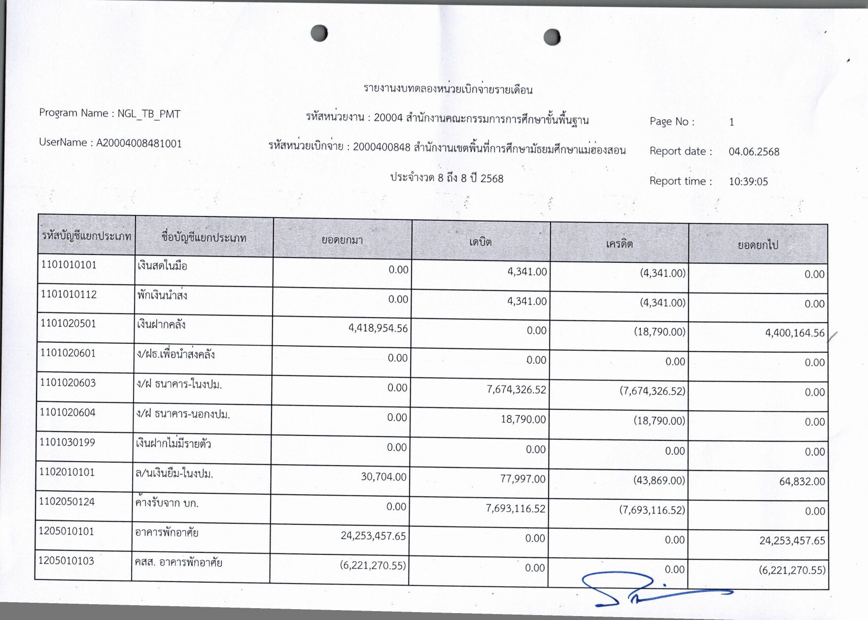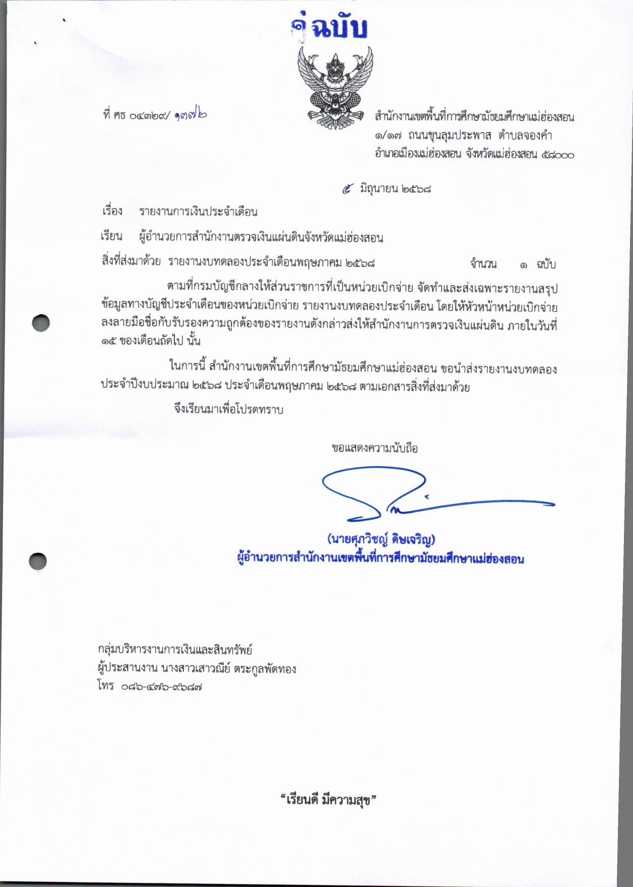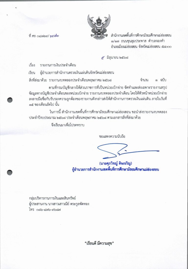 รายงานการเงินประจำเดือนพฤษภาคม พ.ศ. 2568