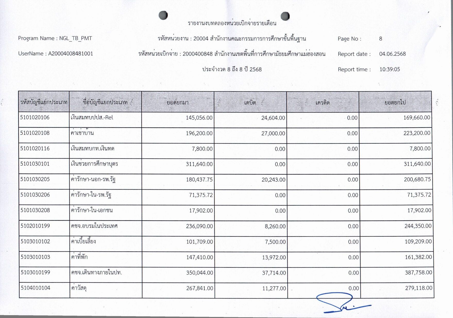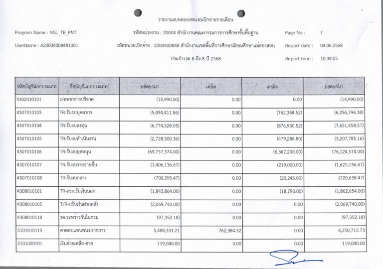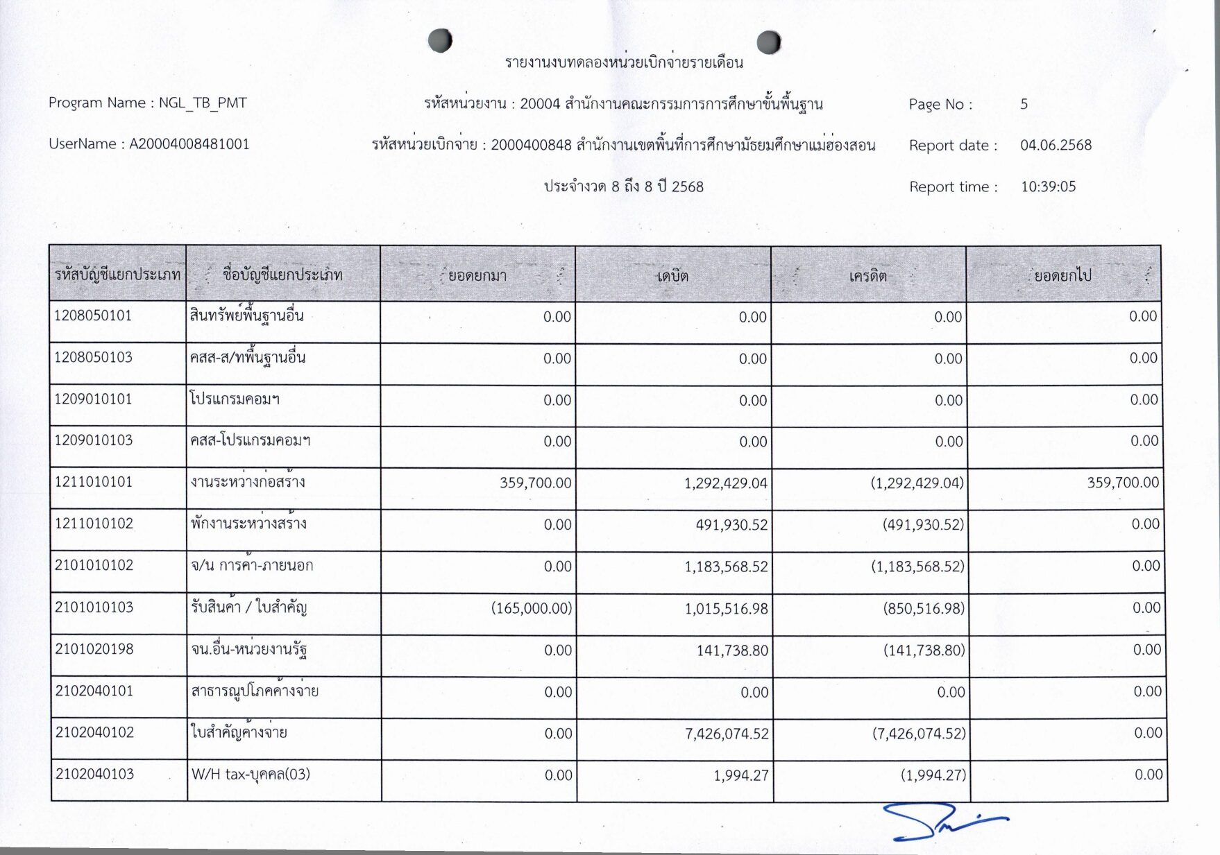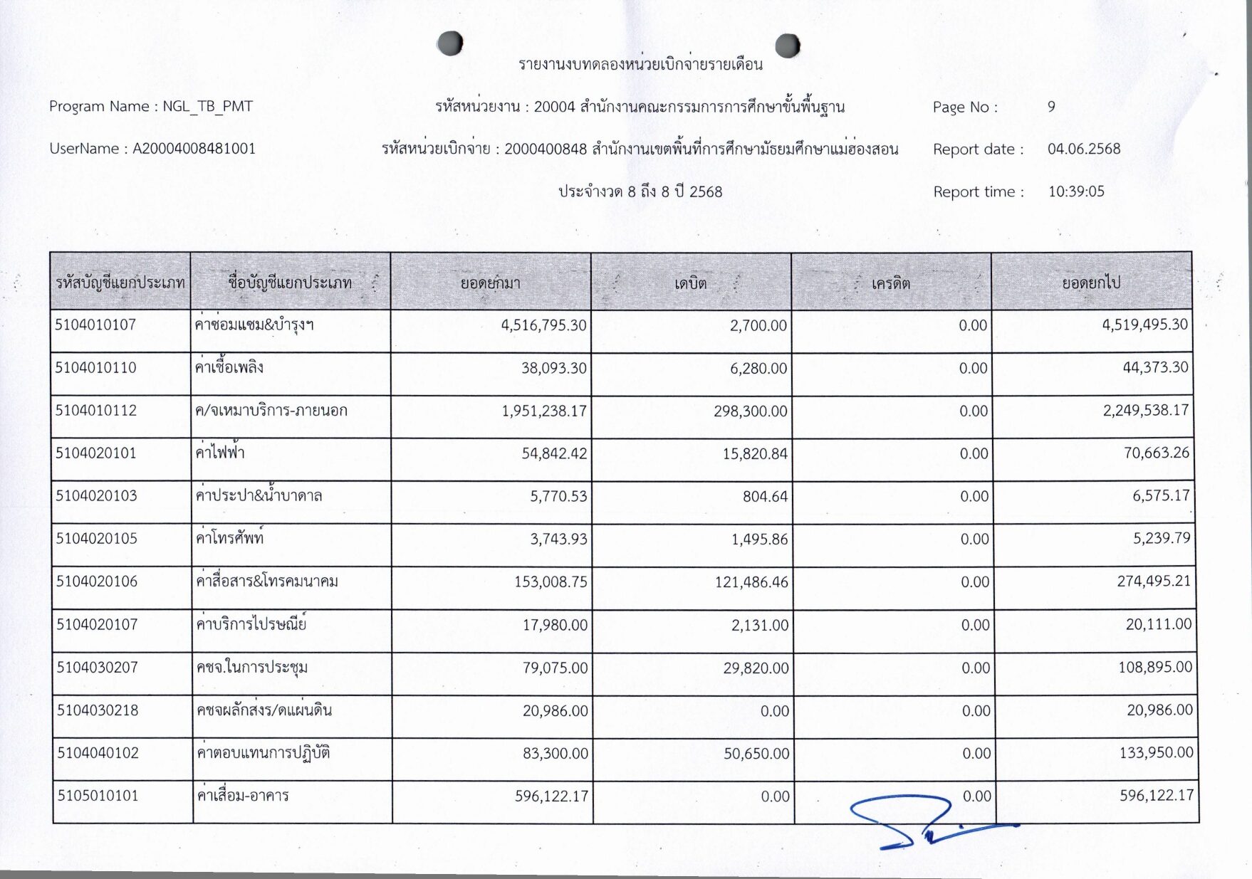 รายงานการเงินประจำเดือนพฤษภาคม พ.ศ. 2568