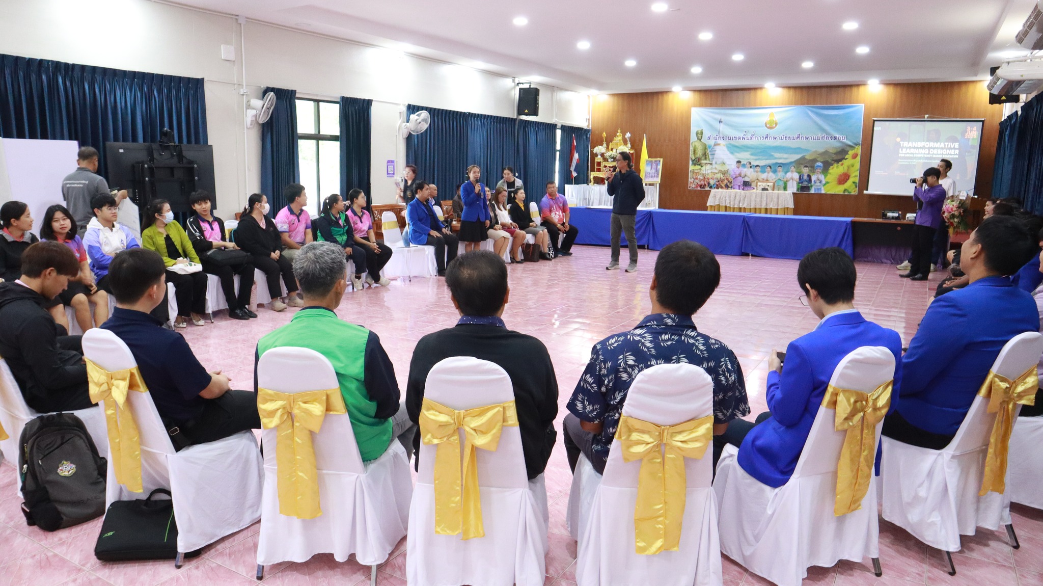 ระหว่างวันที่ 3-4 มิถุนายน 2568 สำนักงานเขตพื้นที่การศึกษามัธยมศึกษาแม่ฮ่องสอนดำเนินการจัดอบรมเชิงปฏิบัติการ “หลักสูตรพัฒนาศักยภาพครูและบุคลากรทางการศึกษาเพื่อเป็นผู้หนุนนำครูสู่ผู้อำนวยการเรียนรู้” เพื่อพัฒนาศักยภาพครูให้สามารถออกแบบการเรียนรู้ที่สอดคล้องกับบริบทของชุมชน และส่งเสริมแนวทางการจัดการเรียนรู้ที่เน้นสมรรถนะ โดยมี นายศุภวิชญ์ ดิษเจริญ ผู้อำนวยการสำนักงานเขตพื้นที่การศึกษามัธยมศึกษาแม่ฮ่องสอน เป็นประธานในการเปิดการอบรม ณ ห้องประชุมสำนักงานเขตพื้นที่การศึกษามัธยมศึกษาแม่ฮ่องสอน ตำบลจองคำ อำเภอเมืองแม่ฮ่องสอน จังหวัดแม่ฮ่องสอน