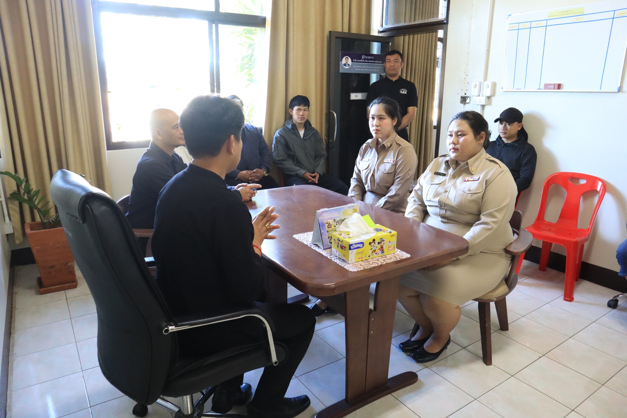วันที่ 20 พฤศจิกายน 2568 เวลา 09.00 น. นายศุภวิชญ์ ดิษเจริญ ผู้อำนวยการสำนักงานเขตพื้นที่การศึกษามัธยมศึกษาแม่ฮ่องสอน พร้อมด้วย นายสุรพล จริยา รองผู้อำนวยการสำนักงานเขตพื้นที่การศึกษามัธยมศึกษาแม่ฮ่องสอน และเจ้าหน้าที่กลุ่มบริหารงานบุคคล ได้ให้การต้อนรับและดำเนินการรับรายงานตัวบุคคลผู้ผ่านการคัดเลือกเข้ารับราชการเป็นข้าราชการครูและบุคลากรทางการศึกษา ตำแหน่งครูผู้ช่วย สังกัดสำนักงานเขตพื้นที่การศึกษามัธยมศึกษาแม่ฮ่องสอน จำนวน 2 ราย ได้แก่