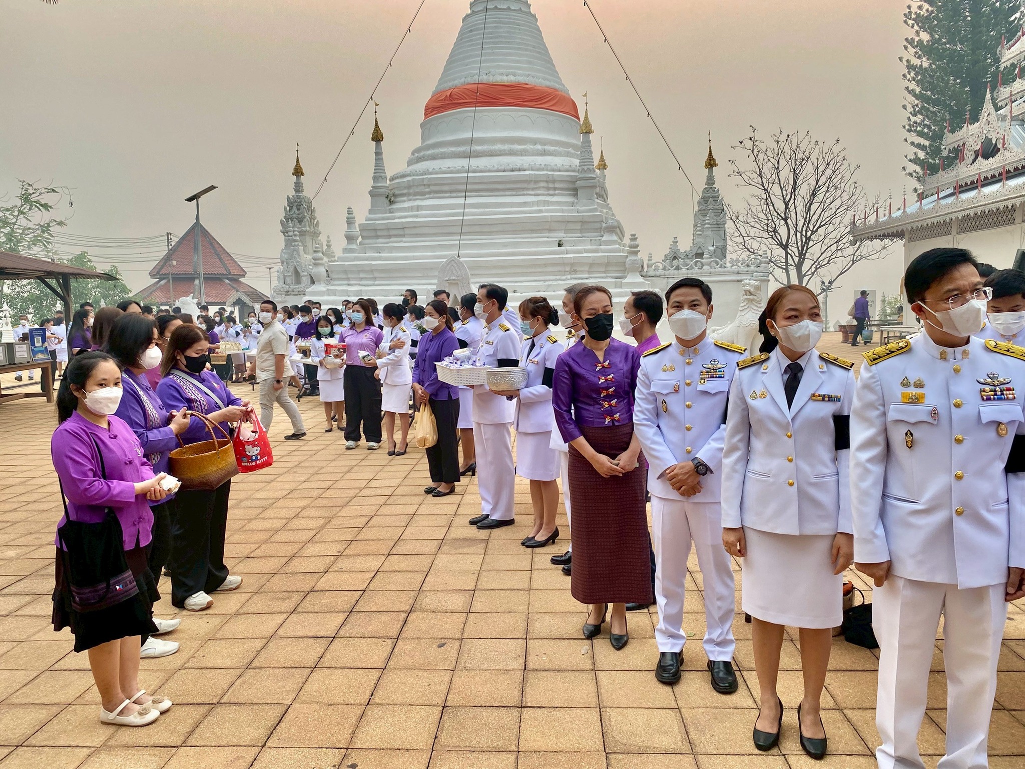 วันที่ 2 เมษายน 2569 เวลา 06.30 น. นายธีรภัทร วงษ์สว่าง ผู้อำนวยการสำนักงานเขตพื้นที่การศึกษามัธยมศึกษาแม่ฮ่องสอน พร้อมด้วย นายสุรพล จริยา นายบรรดิษฐ์ ม่วงอ่อง รองผู้อำนวยการสำนักงานเขตพื้นที่การศึกษามัธยมศึกษาแม่ฮ่องสอน ผู้อำนวยการกลุ่มภารกิจ และเจ้าหน้าที่ เข้าร่วมพิธีทำบุญตักบาตร เฉลิมพระเกียรติ เนื่องในวันคล้ายวันพระราชสมภพ สมเด็จพระกนิษฐาธิราชเจ้า กรมสมเด็จพระเทพรัตนราชสุดาฯ สยามบรมราชกุมารี ณ บริเวณลานวัดพระธาตุดอยกองมู อำเภอเมือง จังหวัดแม่ฮ่องสอน