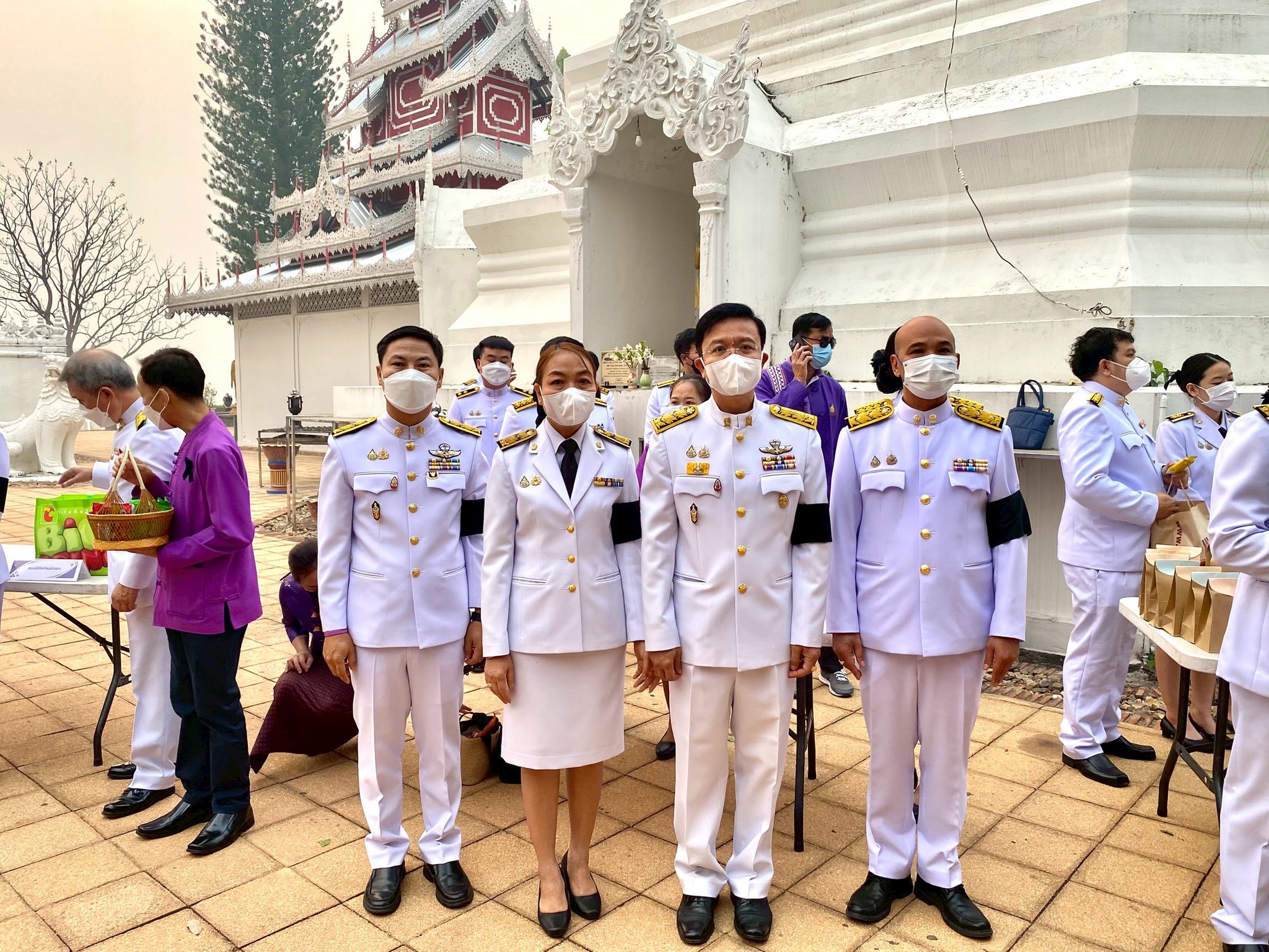 พิธีดังกล่าวมี นายวิบูรณ์ แววบัณฑิต ผู้ว่าราชการจังหวัดแม่ฮ่องสอน เป็นประธานฝ่ายฆราวาส และ พระสุมณฑ์ศาสนกิตติ์ เจ้าคณะจังหวัดแม่ฮ่องสอน เจ้าอาวาสวัดพระธาตุดอยกองมู เป็นประธานฝ่ายสงฆ์ โดยมีหัวหน้าส่วนราชการ ข้าราชการ ศาล ทหาร ตำรวจ และพสกนิกรทุกหมู่เหล่าเข้าร่วมอย่างพร้อมเพรียง เพื่อแสดงออกถึงความจงรักภักดี และน้อมรำลึกในพระมหากรุณาธิคุณอันหาที่สุดมิได้