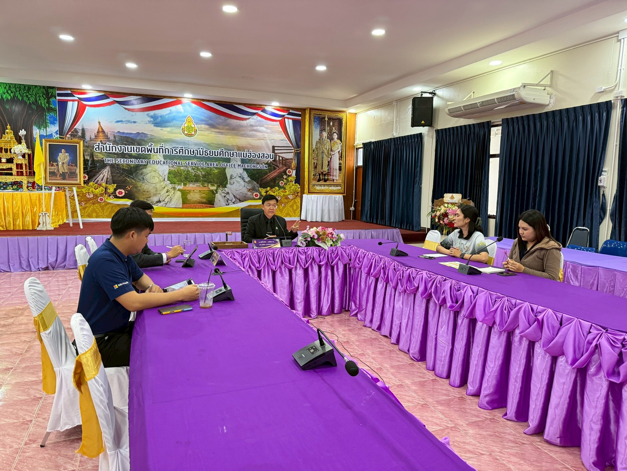 วันที่ 29 มกราคม 2569 เวลา 14.30 น. สำนักงานเขตพื้นที่การศึกษามัธยมศึกษาแม่ฮ่องสอน จัดประชุมชี้แจงแผนการส่งมอบอุปกรณ์การเรียนการสอนสำหรับครูและนักเรียน ภายใต้โครงการส่งเสริมการเรียนรู้ขั้นพื้นฐานทุกที่ทุกเวลา (Anywhere Anytime) ประจำปีงบประมาณ พ.ศ. 2569 โดยมี นายธีรภัทร วงษ์สว่าง ผู้อำนวยการสำนักงานเขตพื้นที่การศึกษามัธยมศึกษาแม่ฮ่องสอน เป็นประธานการประชุม พร้อมด้วย นายบรรดิษฐ์ ม่วงอ่อง รองผู้อำนวยการสำนักงานเขตพื้นที่การศึกษามัธยมศึกษาแม่ฮ่องสอน เจ้าหน้าที่กลุ่มส่งเสริมการศึกษาทางไกล เทคโนโลยีสารสนเทศและการสื่อสาร และเจ้าหน้าที่กลุ่มบริหารงานการเงินและสินทรัพย์ เข้าร่วมประชุม ณ ห้องประชุมชั้น 2 สำนักงานเขตพื้นที่การศึกษามัธยมศึกษาแม่ฮ่องสอน ตำบลจองคำ อำเภอเมืองแม่ฮ่องสอน จังหวัดแม่ฮ่องสอน ผ่านระบบออนไลน์ Google Meet